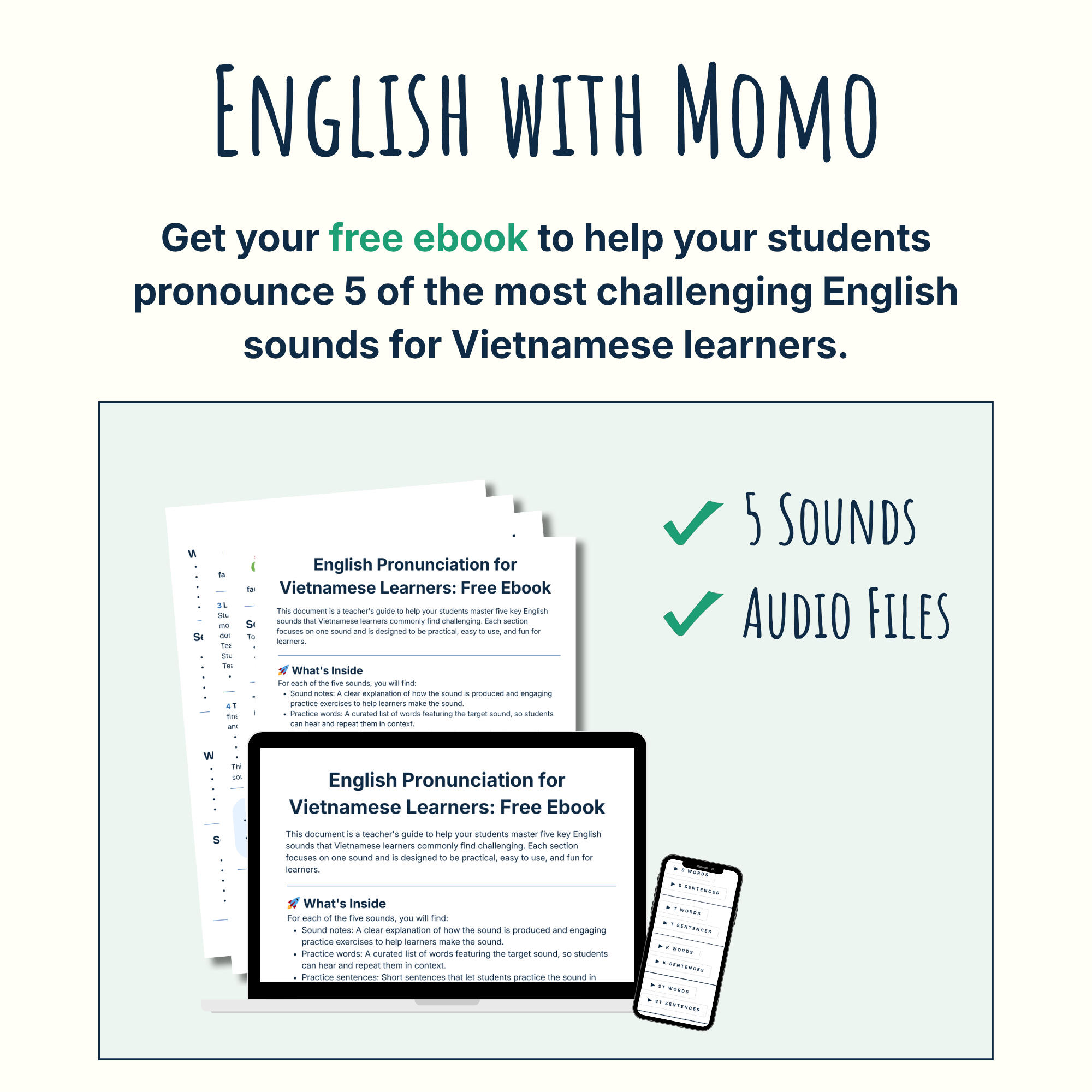We use your email address to:Send you the "5-Key Sounds" PDF and associated audio files.Send you occasional English teaching tips, resources, and updates.Ask for your feedback on our materials to improve our services.3. Data Storage and Security